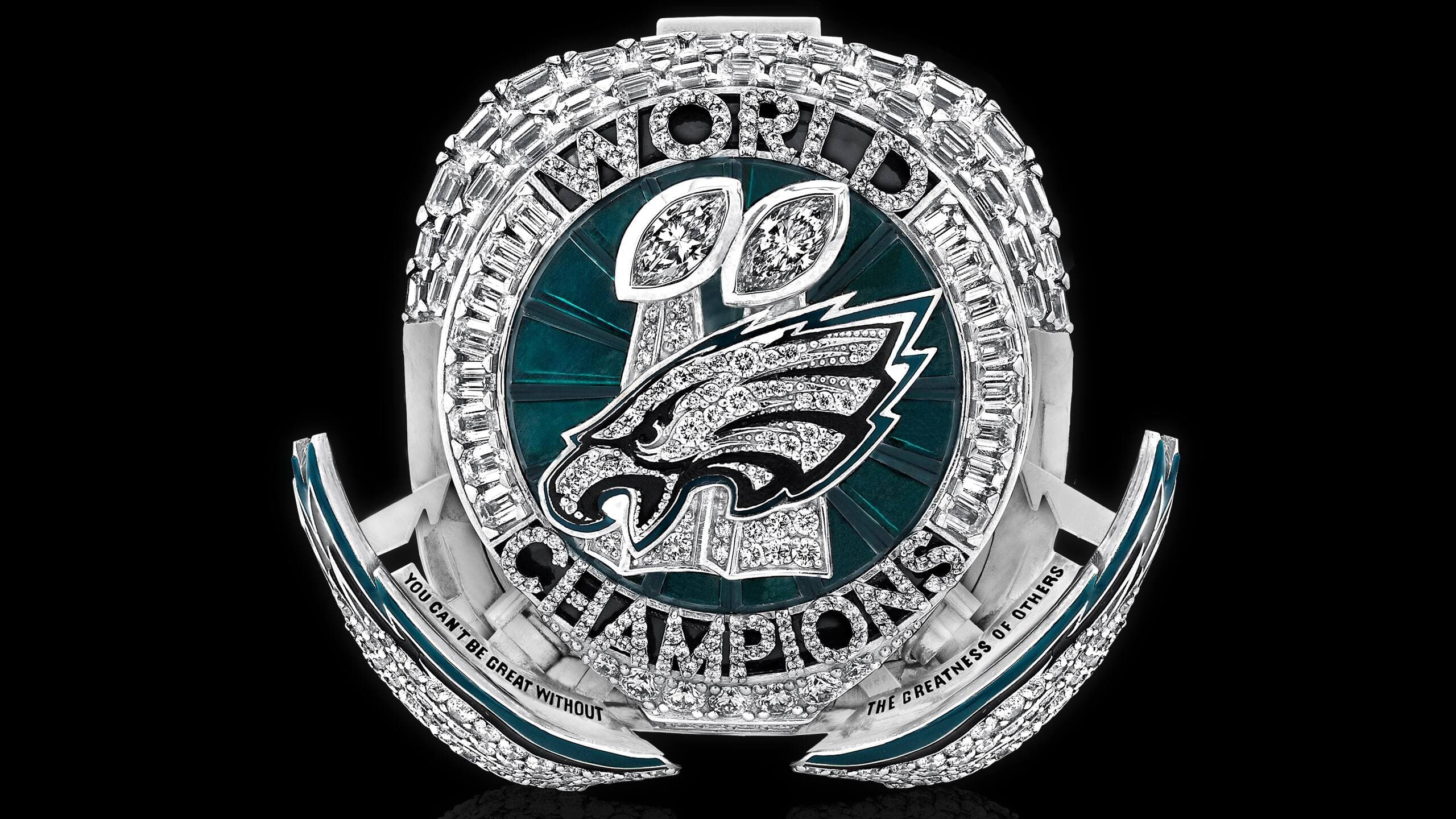 L’inscription «World Champions» contient 40 diamants, ce qui fait référence aux 40 points que les Eagles ont inscrits lors du Super Bowl.