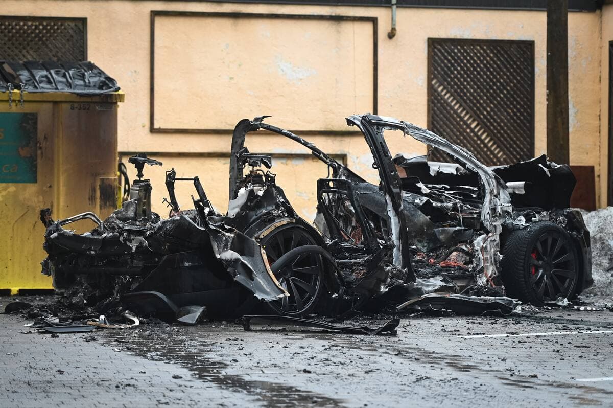PHOTOS | Une Tesla détruite par les flammes à Longueuil