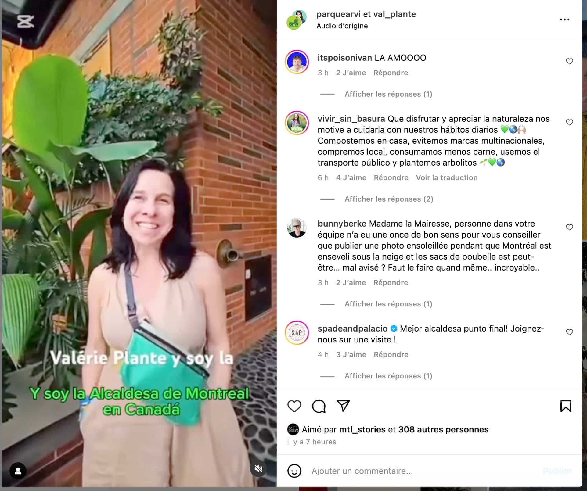Une vidéo de la mairesse Valérie Plante faisant la promotion d’un parc en Colombie a été diffusée sur les réseaux sociaux au moment même où elle demandait aux Montréalais d’être patients avec le ramassage de la neige, ce qui a indigné de nombreux internautes.