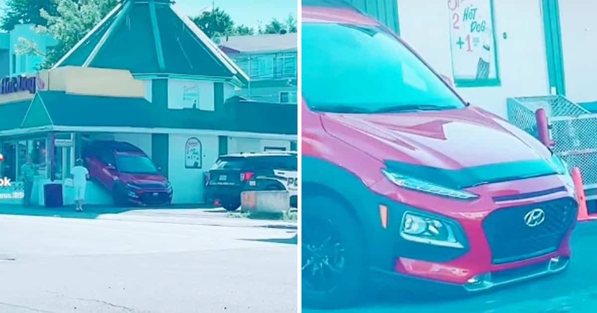 Une voiture coincée dans le mur du Pavillon du Hot-Dog à Jonquière fascine TikTok