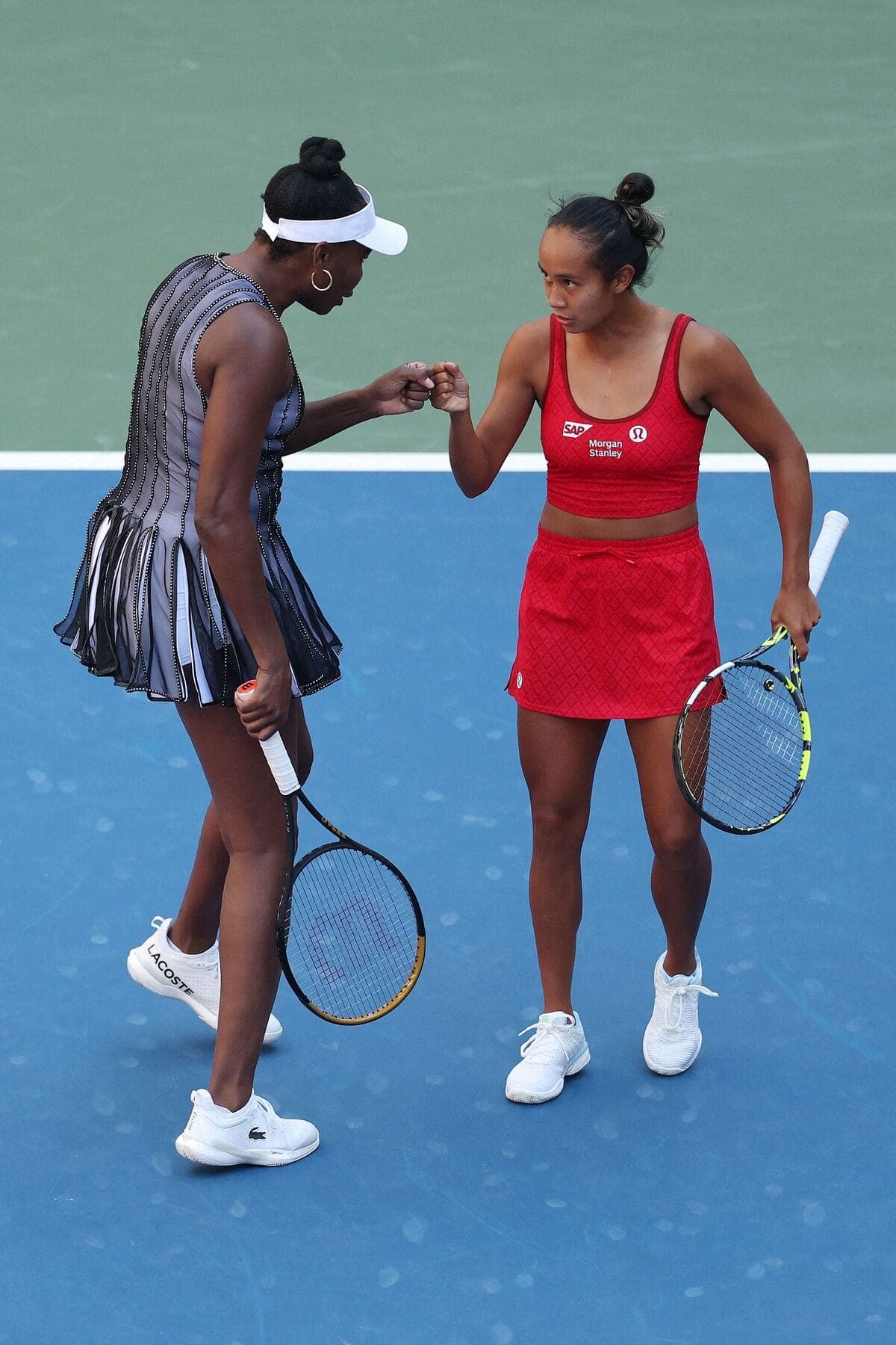Mais aussi parce qu’ensemble, la paire canado-américaine est divertissante à souhait. Non seulement les deux joueuses ont l’air d’une maman et de sa fille – du haut de ses 6 pi 1 po, Venus dépasse Leylah de sept pouces –, mais elles ont du plaisir et sont compétitives à souhait.