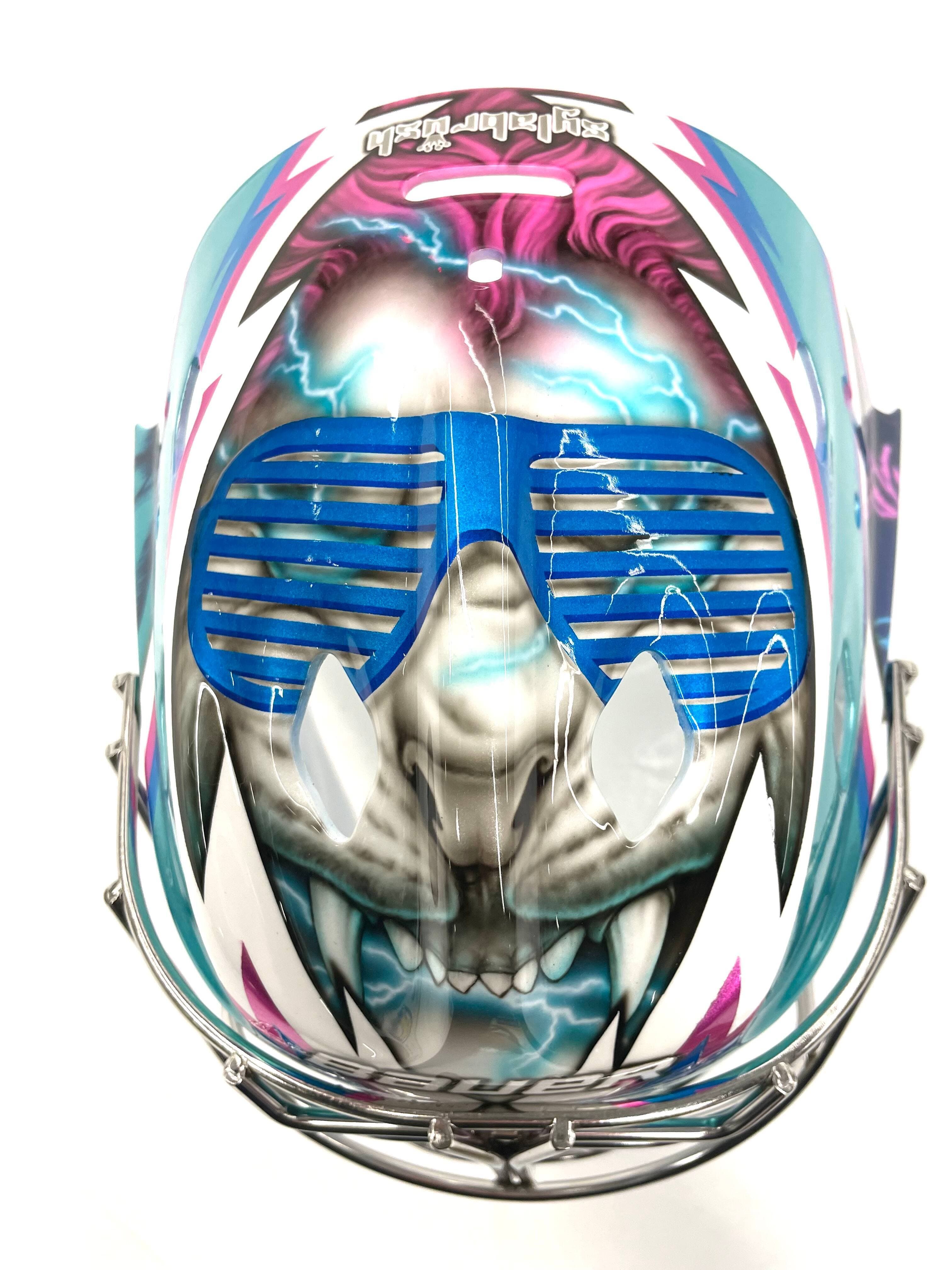 « Il voulait vraiment que le thème soit Miami. C’est sa deuxième ville préférée après Tampa Bay. Il recherchait des couleurs éclatantes qui cadraient avec Miami, dans le style de Miami Vice. Il cherchait à garder des choses qu’il a toujours sur son masque : les éclairs, son numéro 88 et le lion (Big Cat, son surnom). On lui a suggéré d’ajouter des lunettes de soleil sur le lion et il a aimé l’idée. »