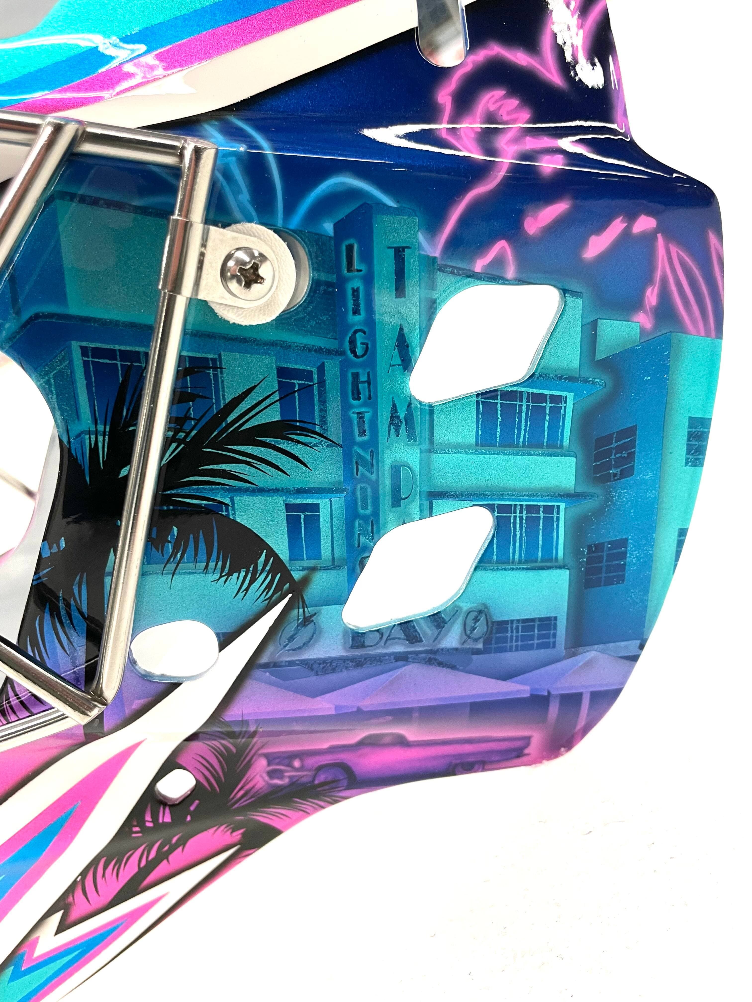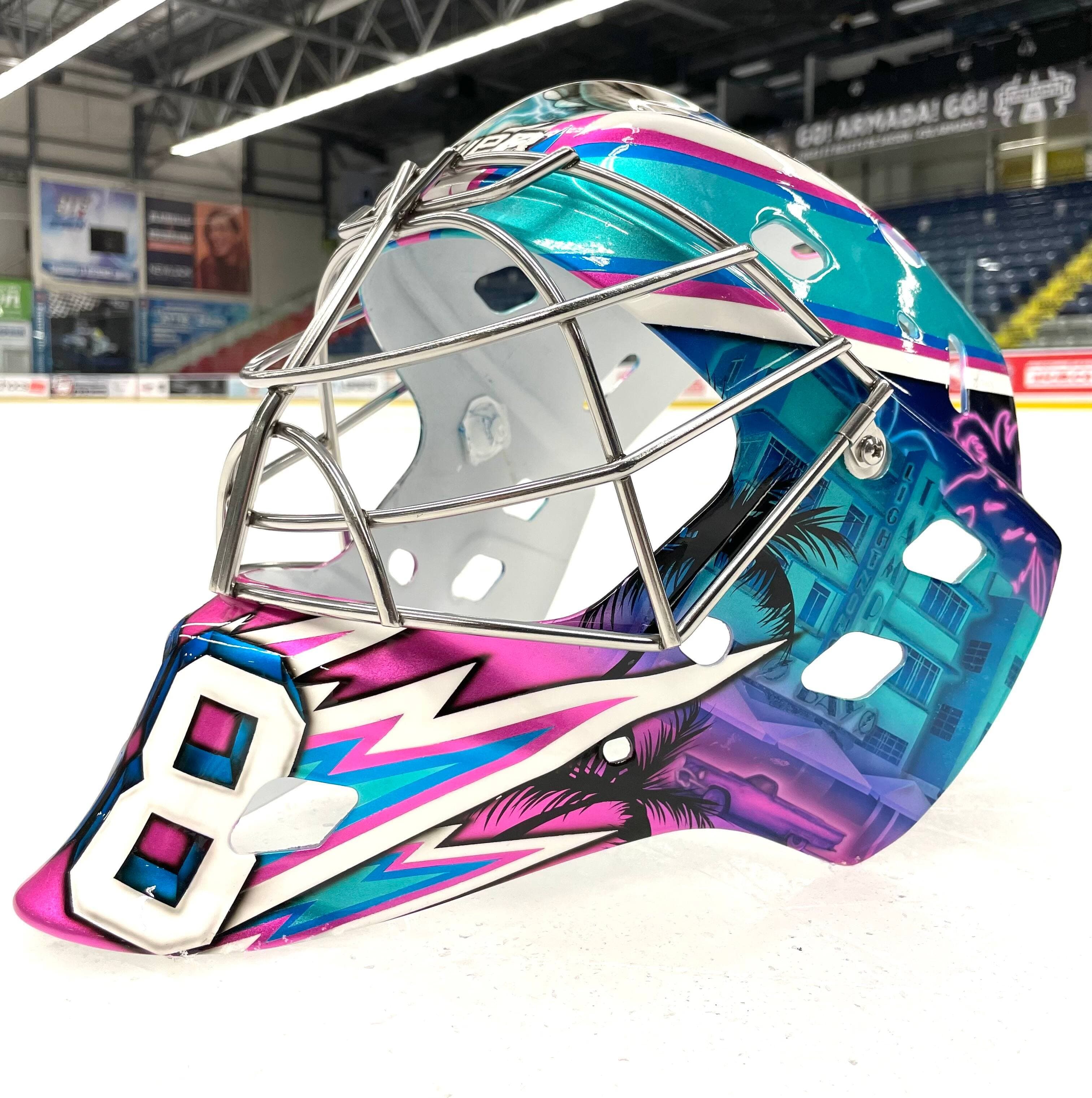 Invité pour une cinquième fois au match des étoiles, Andreï Vasilevskiy a concocté un masque unique pour l’événement avec comme thématique : Miami Vice.