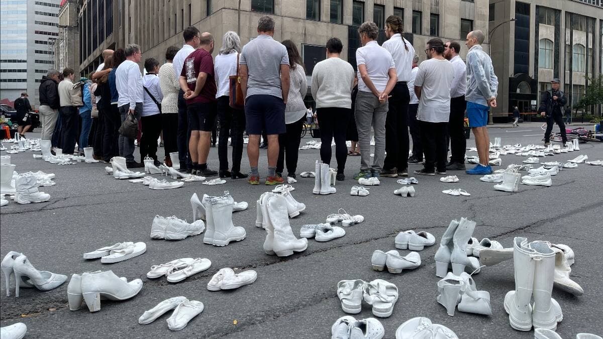 Pour marquer le coup, 645 paires de souliers peintes en blanc ont été déposées à l‘angle de la côte du Beaver Hall et du boulevard René-Lévesque, en l’honneur du même nombre de piétons décédés lors d’une collision sur la route dans la dernière décennie.