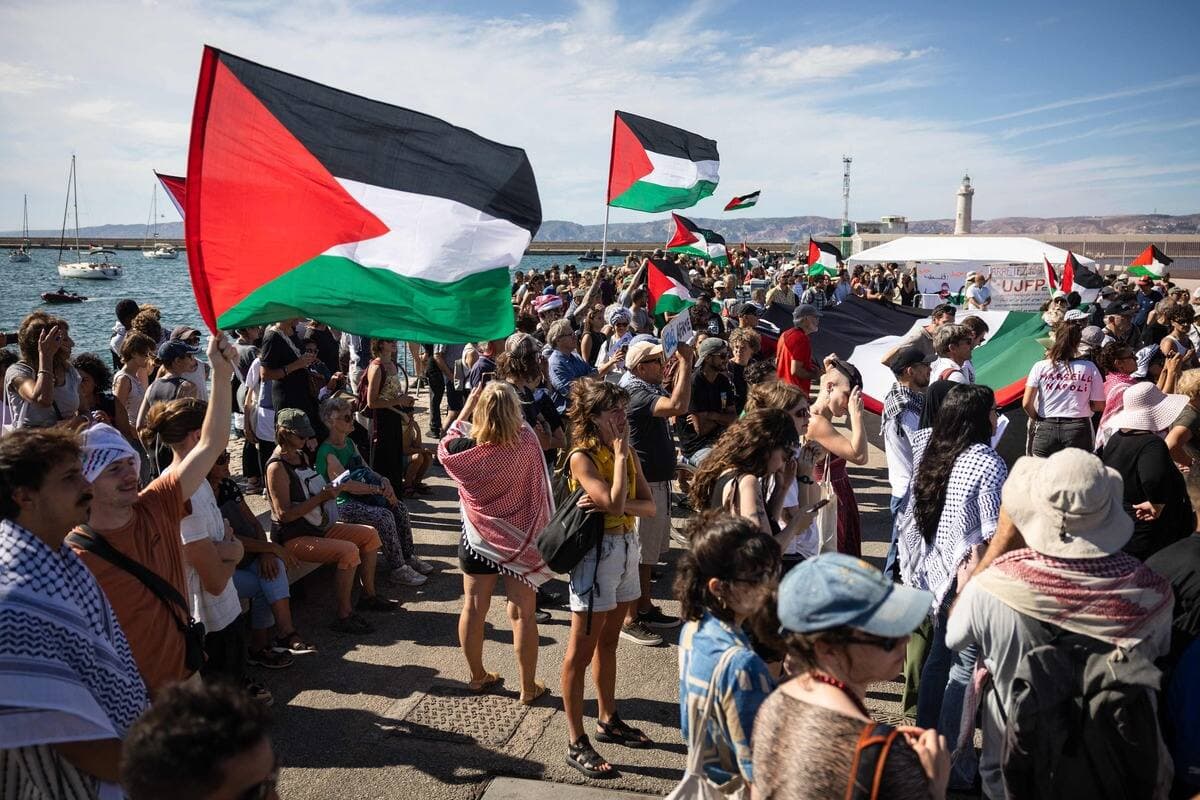 «Nous savons tous ce qu'il se passe et ça ne peut pas continuer ainsi», s'est indignée Claudia Poggi, une professeure munie d'un drapeau palestinien.