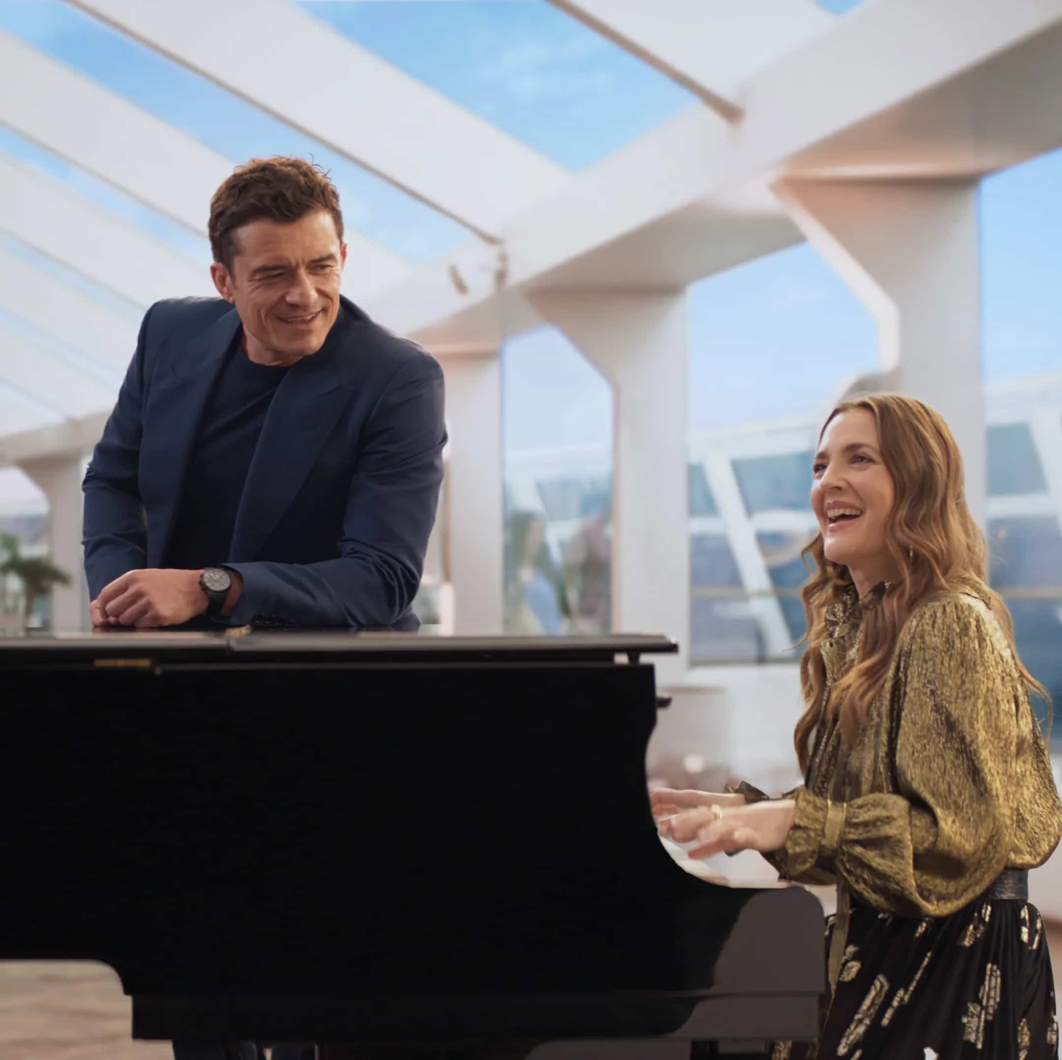 C’est pour mousser son nouveau navire luxueux, le MSC World America, que la compagnie de bateaux de croisière a réuni Drew Barrymore et Orlando Bloom. Dans le court extrait de cette publicité dévoilé hier, celle qu’on a découverte dans le film E.T. en 1982 s’assoit derrière un piano pour entonner Holiday avec davantage d’enthousiasme que de justesse.