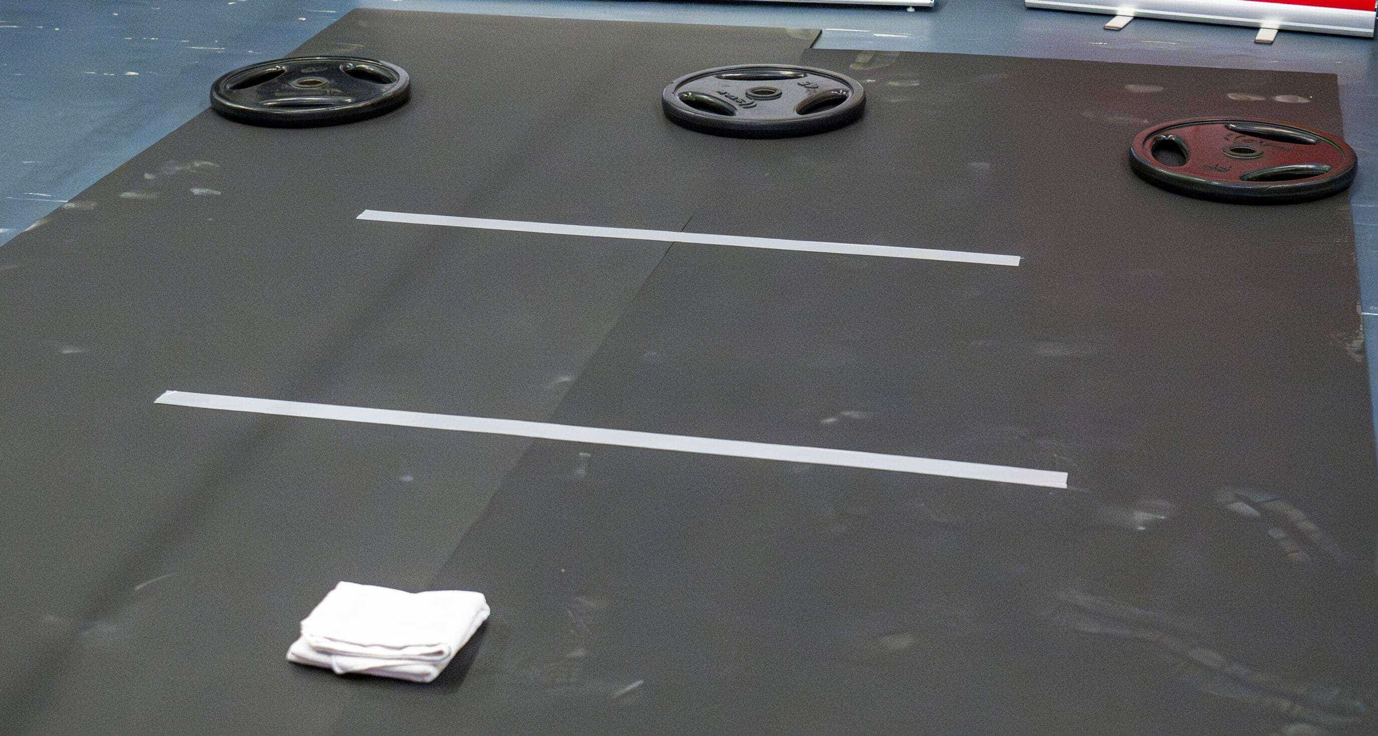 Lorsque Le Journal l’a rencontré, vendredi midi, l’ancien joueur de la Ligue de hockey junior majeur du Québec s’affairait à installer les tapis sur lesquels il s’exécutera et à mesurer la distance entre les rubans adhésifs qui représenteront les lignes à respecter.