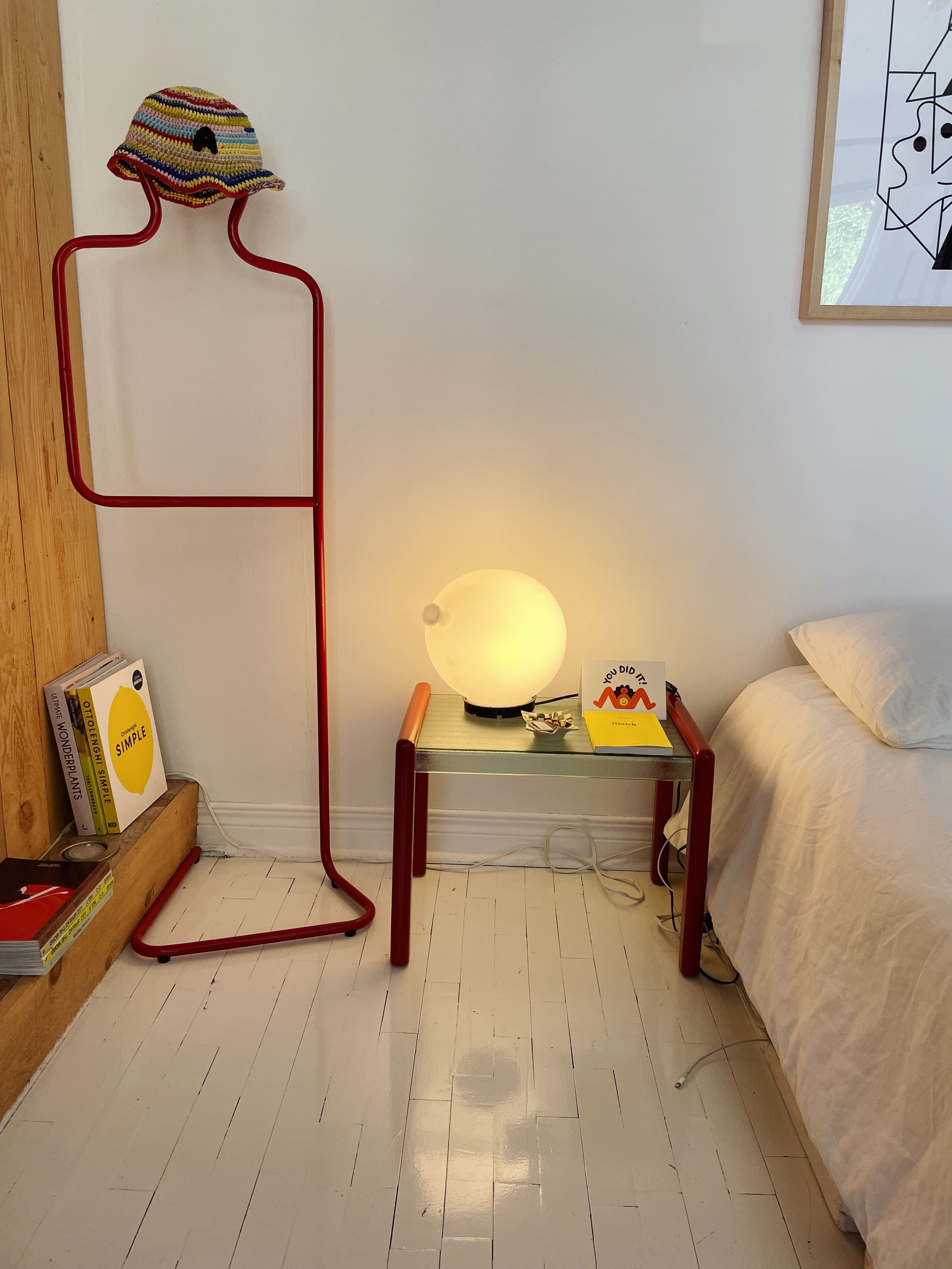 Comme tu peux le constater, j’aime beaucoup les couleurs primaires, donc c’était la source d’inspiration principale. Par la suite Dans l’Air et Séjour Furniture, deux entreprises locales qui se spécialisent dans le design et les objets seconde main, m’ont beaucoup aidé à trouver des objets nichés. C’est vraiment un constant work in progress.
