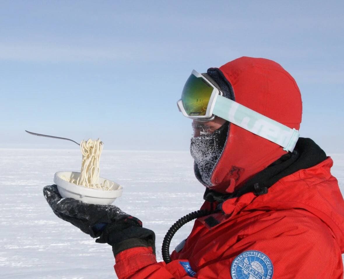 Sur la base de recherche franco-italienne Concordia – la plus isolée du monde –, qui est située à 3200 m d’altitude, il a tenté de préparer des plats au grand air, alors que la température avoisine les -60 °C en octobre.