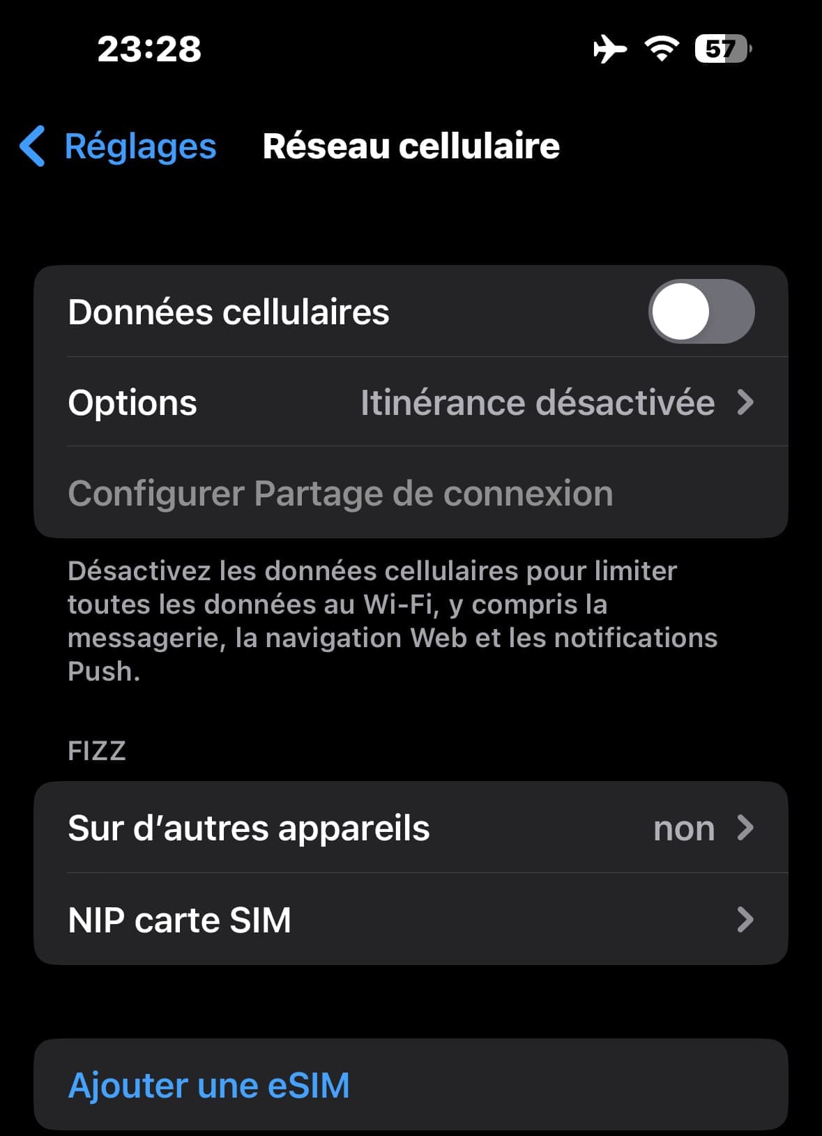 Votre iPhone par exemple intègre sans doute déjà une puce eSIM. Cette opération s’effectue en allant à Réglages –> Réseau cellulaire –> Ajouter une eSIM. Comme illustré ici.