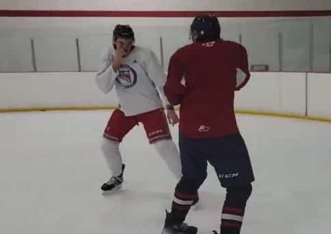 Sur Instagram, le compte @hockeymarathon a partagé une vidéo où on peut voir le hockeyeur de 22 ans montrer à des boxeurs du club Olympus Chestermere l’art de se donner des coups de poing sur patins.
