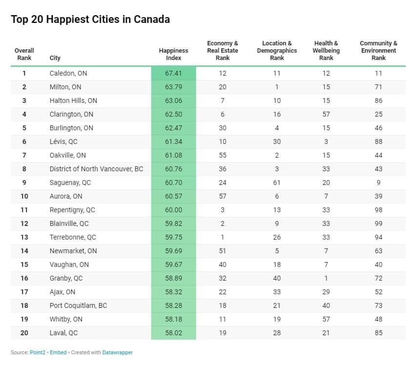 Voici le top 20 des villes les plus heureuses du Canada