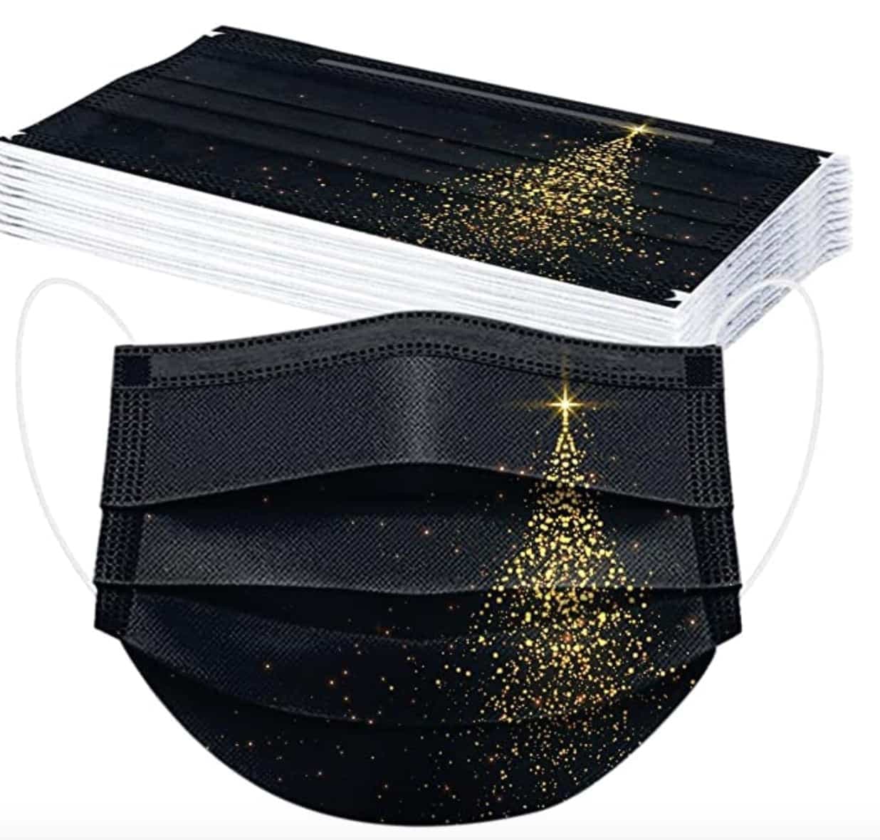 3. Sapin doré sur fond noir, 50 masques à 15,90$