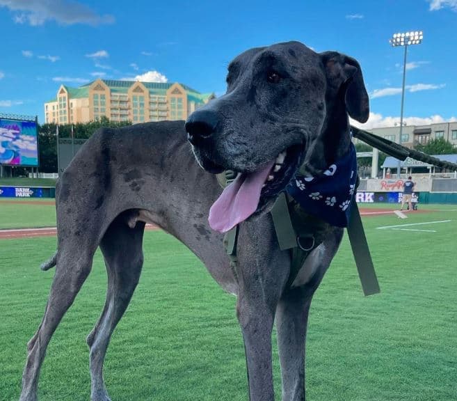 Ce dogue allemand de 3 ans qui pèse 91 kg mesure 1,04 m au garrot et plus de 2 mètres debout sur ses pattes arrière, selon ce que rapporte le magazine Géo.