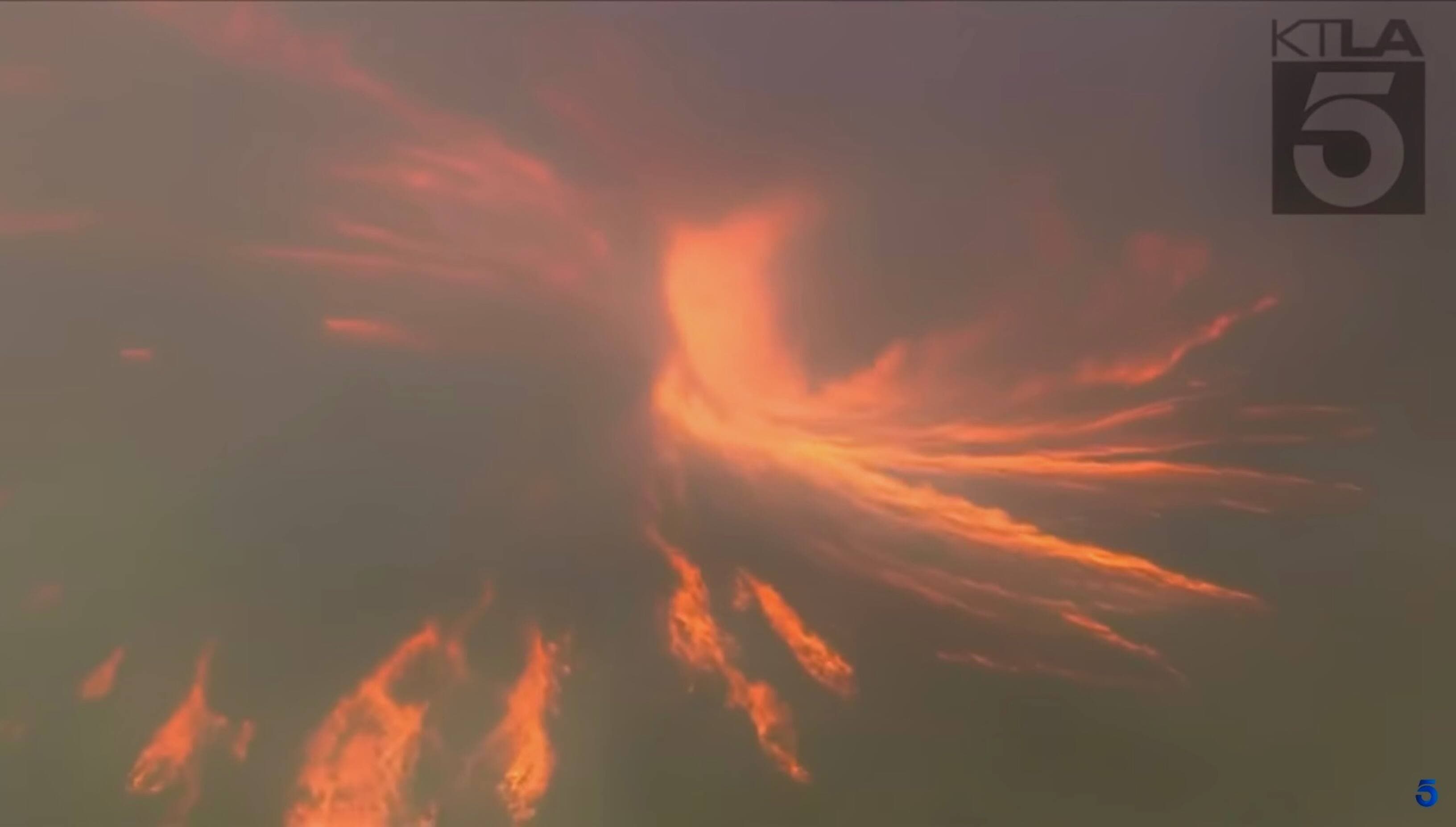 Dans une vidéo partagée par KTLA-TV Channel 5, on peut voir la tornade de feu en action. On peut aussi apercevoir un hélicoptère arroser le feu du haut des airs et tenter de mettre fin au spectacle.