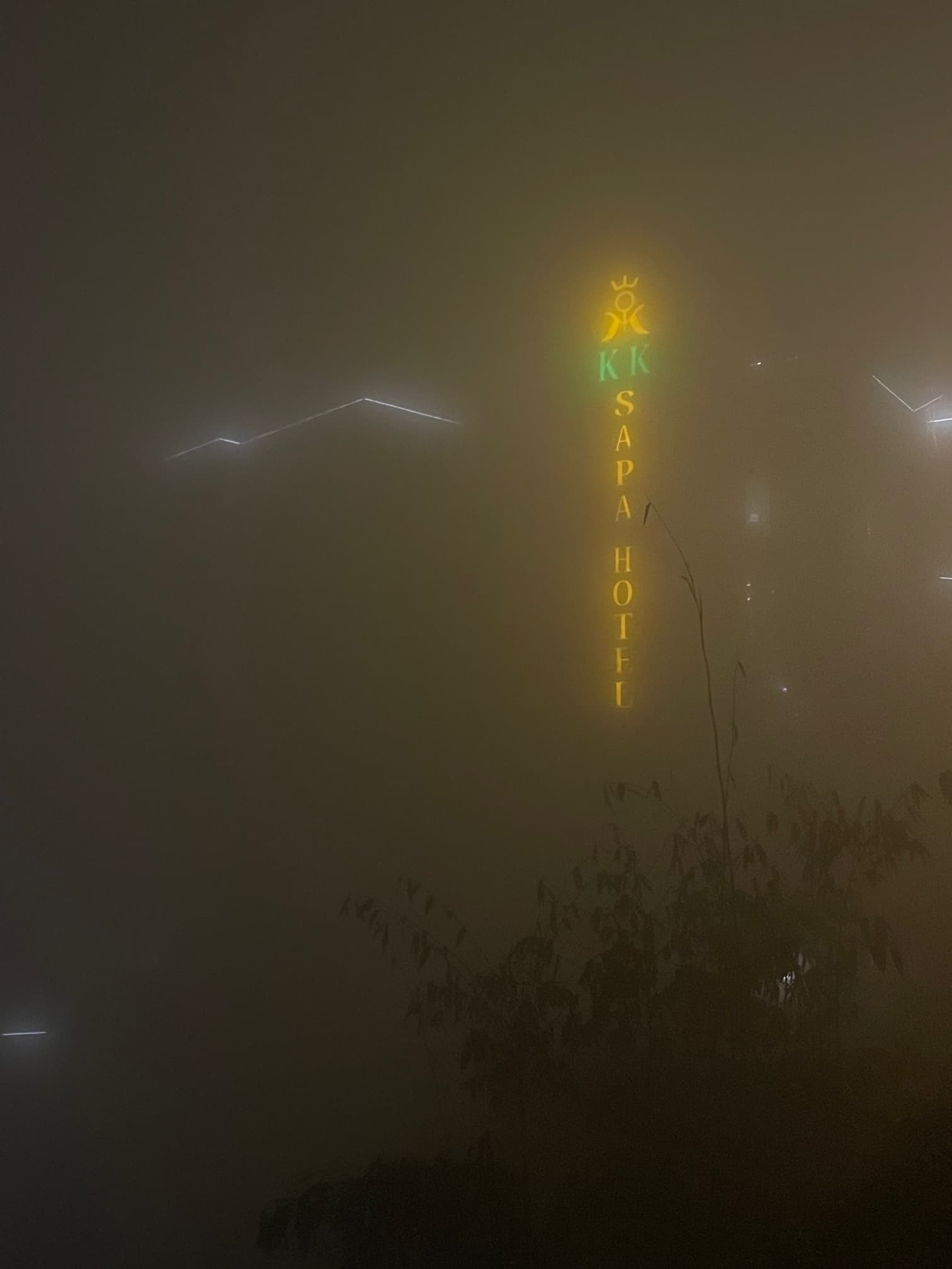 Sa Pa est parfois aussi synonyme d’épais brouillard recouvrant la ville et sa région. Notre chroniqueuse en a d'ailleurs été témoin lors de son passage à 1 650 m d'altitude. Voici une photo de son hôtel (même endroit que la photo précédente) dans le brouillard fantomatique du soir!
