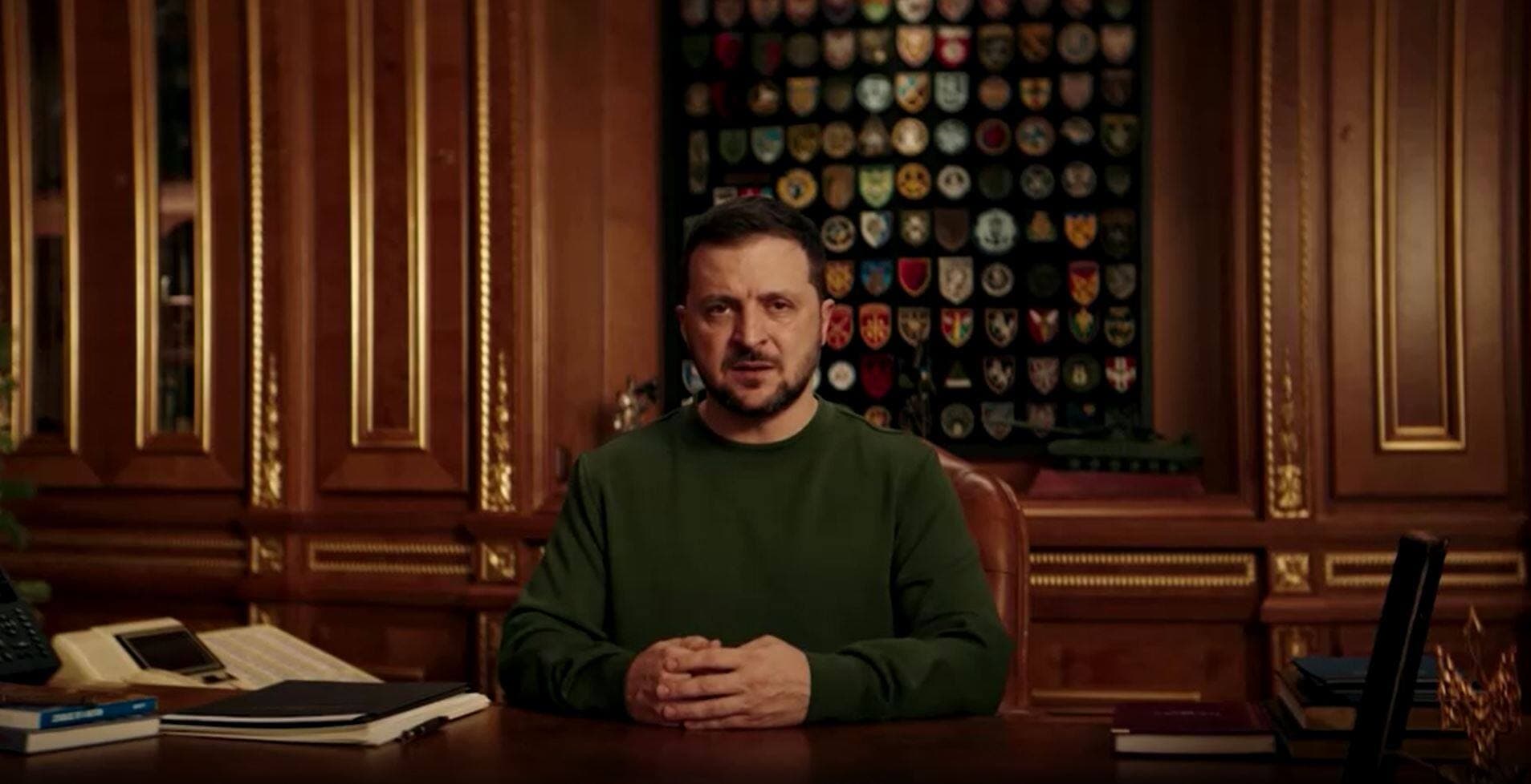 Son allocution télévisée était illustrée par des images de l'artillerie et des avions de chasse ukrainiens.